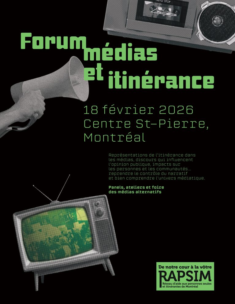 Le 18 février 2026 a eu lieu le Forum annuel du RAPSIM, sur la thématique « Médias et itinérance ». Environ 150 participant-es sont venus écouter et discuter des représentations de l’itinérance dans les médias et des répercussions qu’ont ces représentations sur les personnes et les organismes.